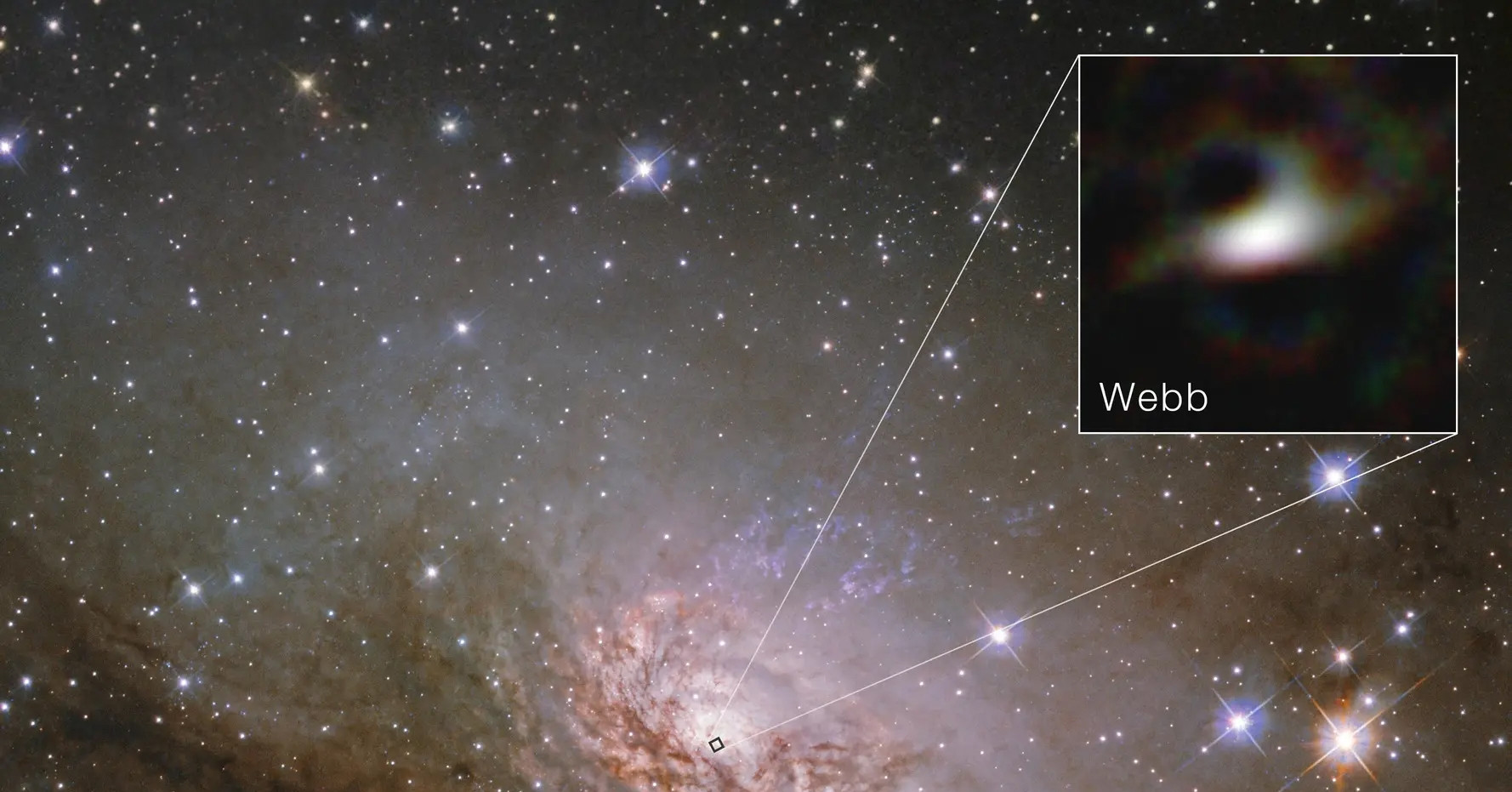 Kết quả là lần đầu tiên trong lịch sử, một kính giao thoa hồng ngoại đặt trong không gian đã quan sát được một thiên hà ngoài Ngân Hà. Đây cũng là hình ảnh sắc nét nhất từng được James Webb ghi lại về môi trường xung quanh một hố đen siêu khối lượng.