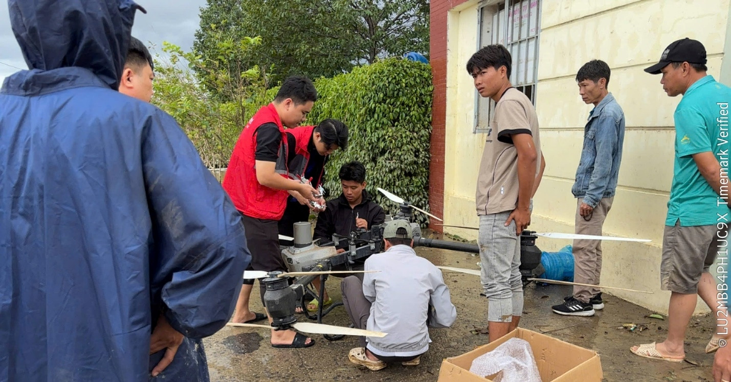 Đơn vị vận hành 5 thiết bị drone vận chuyển hàng cứu trợ cho bà con phường Bắc Nha Trang và Tây Nha Trang, xã Diên Điền và Bác Ái Tây- đây là những khu vực ngập sâu khó tiếp cận bằng xuồng và cano.